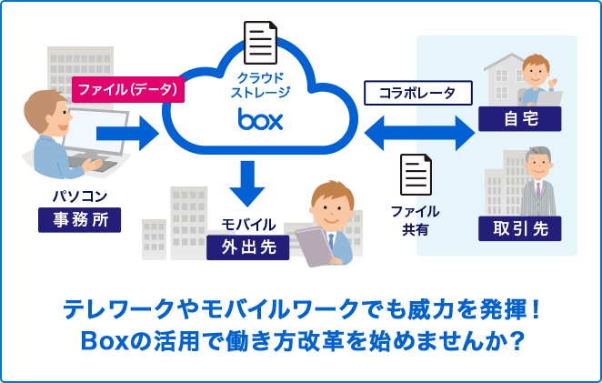 Boxなら、いつでもどこでも安全にデータにアクセスできます。