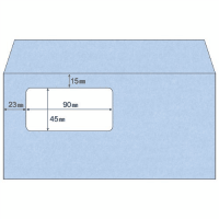 ●窓付き封筒●規格:ニューメールサイズ封筒●本体色:アクア(ブルー)●1箱入数:200枚●窓サイズ:縦45×横90mm●本体サイズ:縦110×横220mm●材質:色上質紙・セロファン●のり付ではありません