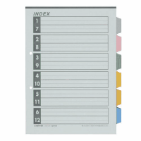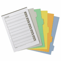 ●インデックス●業務用パック●規格:A4-S●1箱入数:100組(10組×10パック)●インデックス寸法:縦38×横12mm●穴数:2穴●仕様:5色5山6枚1組●外形寸法:縦297×横222mm●穴間隔:80mm●材質:上質紙