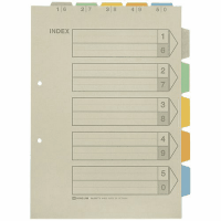●インデックス●タテ型●規格:A4-S●インデックス寸法:縦25×横12mm●穴数:2穴●仕様:5色10山11枚1組●入数:1組●材質:色クラフト紙●外形寸法:縦297×横222mm●穴間隔:80mm