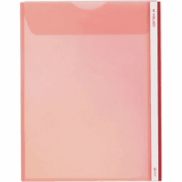 ●クリアホルダー●フタ付ホルダー●マチ付●フタ付●見出し付●タテ型●規格:A4●外形寸法:縦303×横236mm●色:赤●材質:ポリプロピレン●厚:0.2mm●収容枚数:コピー用紙100枚程度●マチ幅10mm