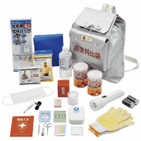 防災用品●外形寸法:幅400×奥70×高405mm●質量:約2.85kg●賞味期限:水=7年、カンパン=5年●材質:非常用持出袋=防炎アルミックス●原産国:日本●注意事項:賞味期限4年2ヶ月以上の商品をお届けします。箱サイズ:約305×225×240mm●セット内容:FM・AMポケットラジオ(単四電池2本付)、LED懐中ライト(単一電池2本付)、保存飲料水(500ml)、缶入カンパン(100g)×2、ブルーシート1.8×1.8m、非常用ローソク(マッチ付)、非常用給水バッグ5L、防寒・保温シート、他