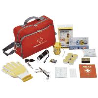 防災用品●外形寸法:幅300×奥110×高200mm●質量:約0.9kg●材質:エマージェンシーバッグ=防水テトロン、ABS樹脂、アルミ他●原産国:日本/箱サイズ:約320×120×220mm●セット内容:エマージェンシーツールキット、サバイバルシート、ポンチョ、LEDライト、トイレパック、IDホイッスル、14徳ツール、ミニキャンドルランタン、スペアキャンドル×6個、マッチ、軍手、防災メモ、綿棒×4、ポケットティッシュ