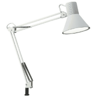 自由自在なヘッドとアームの動き。操作しやすいスイッチ。ランプ交換型デスクライト。●外寸:セード直径190×アーム長450+450mm●質量:1.4kg●クランプ取付可能厚:6~55mm●消費効率:86.6lm/W●消費電力:7.2W●電源:AC100V(50/60Hz)●コード長:1.9m●保証期間:1年間●色:ホワイト●付属品:専用クランプ、LED電球(E26)、取扱説明書●材質:鋼、アルミ、樹脂