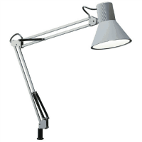 自由自在なヘッドとアームの動き。操作しやすいスイッチ。ランプ交換型デスクライト。●外寸:セード直径190×アーム長450+450mm●質量:1.4kg●クランプ取付可能厚:6~55mm●消費効率:86.6lm/W●消費電力:7.2W●電源:AC100V(50/60Hz)●コード長:1.9m●保証期間:1年間●色:グレー●付属品:専用クランプ、LED電球(E26)、取扱説明書●材質:鋼、アルミ、樹脂