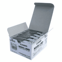 ●「ネームランド」用テープカートリッジ●業務用パック●テープ幅:12mm●色:透明に黒文字●長さ:8m●1セット入数:20個(5個入り×4箱)(個別に袋入)