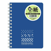 撥水加工の用紙だから屋外作業でも使いやすい。●外形寸法(横)91mm●外形寸法(縦)127mm●枚数:60枚●表紙色:ネイビー●罫内容:6mm横罫●中紙坪量:81.4g/平方m●中紙寸法(厚)90マイクロm●綴じ仕様:ダブルリングとじ●規格:B7変形