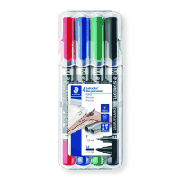 用途に応じて選べるツインチップ。●インク色:4色セット●インク種類:油性インク●本体長[mm]:141●軸寸法(径)[mm]:14●セット内容:赤、青、緑、黒