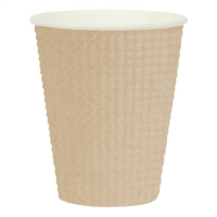 ナチュラルな風合いの無漂白紙カップ。●容量:340mL●カップ寸法(口径):85mm●カップ寸法(高):105.2mm●材質:バージンパルプ(内面ポリエチレンラミネート加工)、エンボス紙二重加工●入数:25個