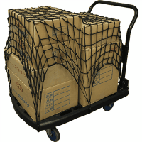 用具、備品を運搬する際の押さえとして、また、落下防止やボールかごの場面でも。●寸法(幅×長):0.9×0.9m●種別:台車用●色:ブラック●目合い:約10cm、●最大伸張:約1.5倍●付属品:フック6本●材質:ゴム(内側)=合成ゴム、被覆(外側)=ポリプロピレン、金具(フック)=POM樹脂