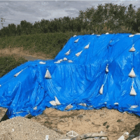 耐候性約2年のブルーシート。裾部の短辺へ刻印を施し使いやすさに拘りました。●シート寸法(幅)1.78m●シート寸法(長)1.77m●質量0.5kg●厚0.25mm●色:ブルー●●ハトメ・ホールピッチ:約90cm●種別:1.8×1.8m●材質:ポリエチレン●耐候年数:約2年●エコマーク認定品