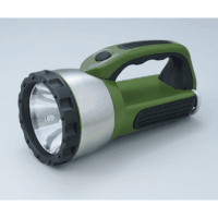大口径レンズで広域を照射。●明るさ:190lm●外寸:幅110×奥127×高223mm●質量445g●使用電池:単1形乾電池×4本●電池持続時間:約50時間●使用電球:白色LED●防塵防滴規格:IPX4