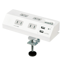 デスクにピッタリ設置。クランプ式※電源タップ。(※クランプは取り外して使えます)●外形寸法(幅)[mm]:160●外形寸法(奥)[mm]:57●外形寸法(高)[mm]:38●USBポート数:2●定格:100V/14A/1400W●コード長:2m●色:ホワイト●USB定格出力電力:合計3.4A(1ポート最大2.4A)
