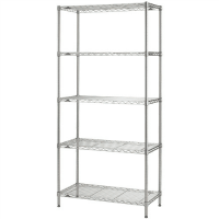 ●外形寸法(幅)[mm]:900●外形寸法(奥)[mm]:450●外形寸法(高)[mm]:1900●質量[kg]:22.2●棚可動ピッチ[mm]:25.4●総最大積載質量:675kg●最大積載質量:135kg/棚1段あたり●組立所要時間目安:2人20分●組立必要工具:プラスチックハンマー●付属品:テーパードスリーブ5段分(20セット)●材質:ポール=SUS430ステンレス、棚=スチール(クロームメッキ・クリアコーティング仕上)