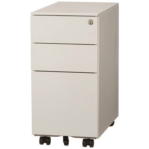 3段すべてにダブルサスペンションレールを採用。●外形寸法(幅)[mm]:300●(奥)[mm]:500●(高)[mm]:600●質量[kg]:13.2●機能:オールロック機能、転倒防止コロ、ダブルサスペンションレール、飛び出し防止機能付●付属品:ペントレー1個●色:ホワイト●鍵枚数:2枚●最大積載質量:引出上・中段=5kg、下段=15kg●引出内形寸法:上段・中段=幅239×奥392×高69、下段=幅329×奥392×高244mm●翌日配送対象外商品 約3日のお届けです(例外あり)