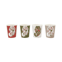 ホールマークデザインの花柄カップ。●入数:100個●容量:150mL●容量:7オンス●カップ寸法(口径):65.5mm●カップ寸法(高):73mm●色:4柄アソート●材質:バージンパルプ(内面ポリエチレンラミネート加工)●原産国:日本製