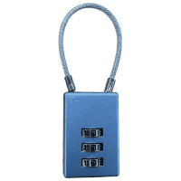曲げやすいワイヤーを使用。好きな番号に設定できる番号可変式錠。●外形寸法(幅)[mm]:26●外形寸法(奥)[mm]:12●外形寸法(高)[mm]:81●質量[g]:45●ワイヤー寸法(径)[mm]:2●ワイヤー寸法(長)[mm]:85●色:メタリックブルー●材質:本体=亜鉛ダイキャスト ワイヤー=ステンレス・塩ビコーティング●暗証番号の設定方法:任意の3桁暗証番号を設定可能