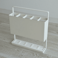 ●外形寸法(幅)[mm]:277、(奥)[mm]:68、(高)[mm]:300●質量[kg]:2.2●収容本数:5本●色:ホワイト●仕様:傘についた水分を吸収してくれる珪藻土付かさ立て。薄さわずか7cmに5本の傘を収納できます。背面に施された工夫により傘をまっすぐ立てられ、折りたたみ傘もずり落ちません。