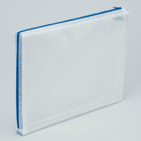 ●メッシュケース●マチ付●見出しなし●規格:A4●外形寸法:260×345mm●内形寸法:240×330mm●色:青●マチ幅:30mm●材質:オレフィン樹脂●厚:0.27mm※内形寸法はファスナー開口部を基準としています。