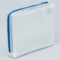 ●メッシュケース●マチ付●見出しなし●規格:A6●外形寸法:130×165mm●内形寸法:110×150mm●色:青●マチ幅:30mm●材質:オレフィン樹脂●厚:0.27mm※内形寸法はファスナー開口部を基準としています。
