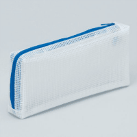 ●メッシュケース●マチ付●見出しなし●規格:ペンケースサイズ●外形寸法:90×200mm●内形寸法:70×185mm●色:青●マチ幅:30mm●材質:オレフィン樹脂●厚:0.27mm※内形寸法はファスナー開口部を基準としています。