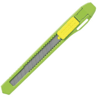 ●カッター●小型カッターナイフ●色:グリーン●適合替刃:CU-201、CU-203●材質:本体=ABS樹脂、スライダ=POM、刃=鉄●質量:10g●手動ロック式●セリースパック入