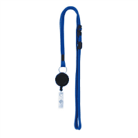 ●吊り下げ名札●色:青●ひもの長さ:約90cm●ひもの幅:10mm●リールの長さ:最長約60cm●材質:リール=プラスチック樹脂、ひも=PET●仕様:安全パーツ・長さ調節具付