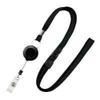 ●吊り下げ名札●色:黒●ひもの長さ:約90cm●ひもの幅:10mm●リールの長さ:最長約60cm●材質:リール=プラスチック樹脂、ひも=PET●仕様:安全パーツ・長さ調節具付