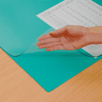 ●デスクマット●片面無移行●抗菌●下敷付き●反射防止加工:ノングレア●外形寸法:縦695×横1095mm●材質:マット=ポリ塩化ビニル1.8mm厚(透明)、下敷=ポリエチレンスポンジ2mm厚(グリーン)●裏面非転写処理加工、表面反射防止加工+抗菌加工●上部マットと下敷きは接合せず、別々です。