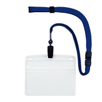 ●吊り下げ名札●ソフト●チャックタイプ●色:青●中紙サイズ:縦69×横97mm●ひもの長さ:90cm●ひもの幅:10mm●1パック入数:10枚●中紙付●外寸:縦91×横108mm●材質:名札ケース=ポリオレフィン、ループひも=PET●仕様:チャック式、安全パーツ・長さ調整具付●適合中紙寸法:縦69×横97mm