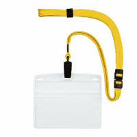 ●吊り下げ名札●ソフト●チャックタイプ●色:黄●中紙サイズ:縦69×横97mm●ひもの長さ:90cm●ひもの幅:10mm●1パック入数:10枚●中紙付●外寸:縦91×横108mm●材質:名札ケース=ポリオレフィン、ループひも=PET●仕様:チャック式、安全パーツ・長さ調整具付●適合中紙寸法:縦69×横97mm
