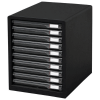 ●書類を細分化できるスリムタイプ。●レターケース●本体樹脂製●タテ型A4●引出し:浅型10段●幅265×奥350×高345mm●引出し内寸:幅230×奥320×高25mm●材質:本体=ハイインパクトスチロール、引出し=スチロール樹脂●付属品:見出しシール(1枚20片)