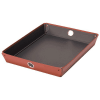 ●デスクトレー●種別:茶●外寸:幅304×奥372×さ54mm●内寸:幅264×奥335×高50mm●材質:表装=P.P.くるみ貼り、中芯=ボール紙