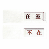 ●サインプレート●品名:在室⇔不在●粘着テープ付き●外形寸法:縦40×横130×厚さ7mm●本体材質:アクリルホワイト
