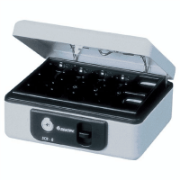 ●手提金庫●シリンダー錠式●A6●トレー収納時:高45mm●材質:スチール、ABS樹脂●外形寸法:幅197×奥161×高90mm●内形寸法:幅175×奥128×高60mm●質量:約1.06kg●付属品:鍵2本