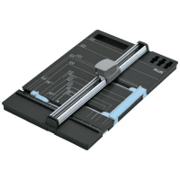 ●断裁機●ディスクカッター●スライドタイプ●規格:A4●断裁幅:297mm●断裁枚数(1往復):20枚●外形寸法:幅277×奥412×高81mm●質量:1kg●ダブルゲージ付●装着品:直線刃1枚、マット1本