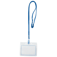 ●吊り下げ名札●ソフト●チャックタイプ●色:青●種別:ケースL+ひもセット10枚●ひもの長さ:90cm●ひもの幅:約10mm●中紙付●適合中紙寸法:縦70×横100mm●外寸:縦90×横110mm●仕様:安全パーツ、長さ調整具付●材質:クリップ=ポリカーボネイト、ひも=PET、安全パーツ=ポリアセタール、ケース=PE
