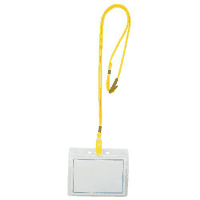 ●吊り下げ名札●ソフト●チャックタイプ●色:黄●種別:ケースL+ひもセット10枚●ひもの長さ:90cm●ひもの幅:約10mm●中紙付●適合中紙寸法:縦70×横100mm●外寸:縦90×横110mm●仕様:安全パーツ、長さ調整具付●材質:クリップ=ポリカーボネイト、ひも=PET、安全パーツ=ポリアセタール、ケース=PE