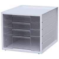 ●レターケース●本体樹脂製●タテ型A4●引出し:浅型3段・深型1段●色:ホワイト●幅276×奥335×高252mm●引出し内寸:浅型=幅239×奥312×高38mm、深型=幅234×奥310×高82mm●質量:1.37kg●材質:本体=ポリプロピレン、引出し=スチロール樹脂●付属品:見出しシール10枚(42×14mm)