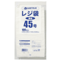 ●レジ袋●規格:45号●寸法:縦530×横300×マチ140mm●厚さ:0.023mm●色:乳白●1パック入数:100枚●材質:高密度ポリエチレン