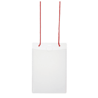 ●吊り下げ名札●色:レッド●ひもの長さ:約1000cm(結び目含む)●ひもの径:約2mm●適合中紙寸法:縦148×横100mm●外形寸法:縦170×横116mm●材質:ケース=PP、紐=PET●中紙なし