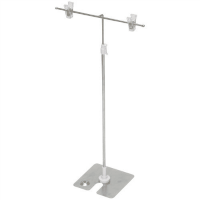 ●高さ調節可能なT型POPスタンド。●色:クローム●材質:本体=スチール、クリップ=PS、結合部=樹脂/外形寸法:幅250×高450~720mm/クリップ最大幅:約244mm