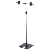 ●高さ調節可能なT型POPスタンド。●色:ブラック●材質:本体=スチール、クリップ=PS、結合部=樹脂/外形寸法:幅250×高450~720mm/クリップ最大幅:約244mm