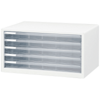 ●大容量のA3サイズ。書類整理に便利なスチール製レターケース。●外形寸法mm:幅494×奥335×高260●引出内形寸法mm:幅453×奥311×高36●本体色:白●引出段数:浅型5段●種別:本体スチール製●材質:本体=スチール・粉体焼付塗装、引出し=透明スチロール樹脂、段板=ポリプロピレン