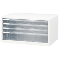 ●大容量のA3サイズ。書類整理に便利なスチール製レターケース。●外形寸法mm:幅494×奥335×高260●本体色:白●引出段数:浅型3段・深型1段●種別:本体スチール製●材質:本体=スチール・粉体焼付塗装、引出し=透明スチロール樹脂、段板=ポリプロピレン