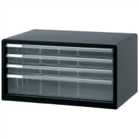 ●大容量のA3サイズ。書類整理に便利なスチール製レターケース。●外形寸法mm:幅494×奥335×高260●本体色:黒●引出段数:浅型3段・深型1段●種別:本体スチール製●材質:本体=スチール・粉体焼付塗装、引出し=透明スチロール樹脂、段板=ポリプロピレン