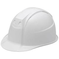 厚生労働省「保護帽の規格」国家検定合格品(飛来落下用試験、墜落用試験、耐電圧試験)のヘルメット。軽量・ワンタッチ調整バンド付き。●質量[g]:約408●頭周り[cm]:54~62●タイプ:つば付きアメリカン型●ライナー:有●あごひもの装着方法:ワンタッチ脱着式●つば:有●色:ホワイト●材質:本体=ABS樹脂、内装=プラスチック