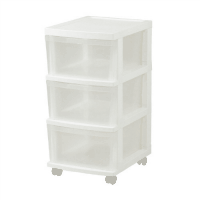 移動に便利なキャスター付収納ケース●外形寸法(幅)340×外形寸法(奥)420×外形寸法(高)680mm●質量:3kg●引出内形寸法(幅):258mm●引出内形寸法(奥):371mm●引出内形寸法(高):168mm●耐荷重:天板・引出=2kg●色:ホワイト●種別:3段●材質:天板・本体・支柱・引出・キャスター受け=ポロプロピレン、キャスター=ポリプロピレン(鉄芯入)●組立所要時間目安:1人5分