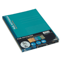 ●入数:1パック(30枚×5冊)●色:パープル、ブルー、グリーン、イエロー、オレンジ各1●セミB5●B罫6mm、35行●サイズ:縦252×横179mm●材質:植林木上質紙●坪量:75g/平方m●無線とじ●型番:NO-003BS-5CP