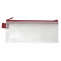 ●メッシュケース●マチなし●見出しなし●規格:PENタイプ●外形寸法:縦90×横200mm●内形寸法:縦85×横195mm●色:レッド●材質:オレフィン系シート●厚:0.3mm